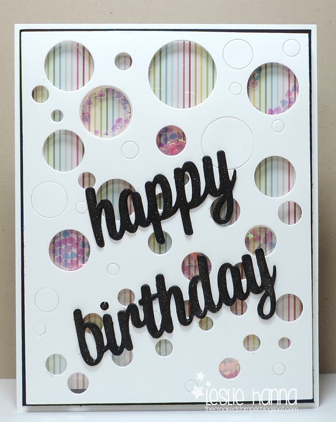Since the shaker frames were circles, I chose a die panel with circles in it, then started to apply the various-sized circles to the back of the die-cut card front. Here's what it looked like: